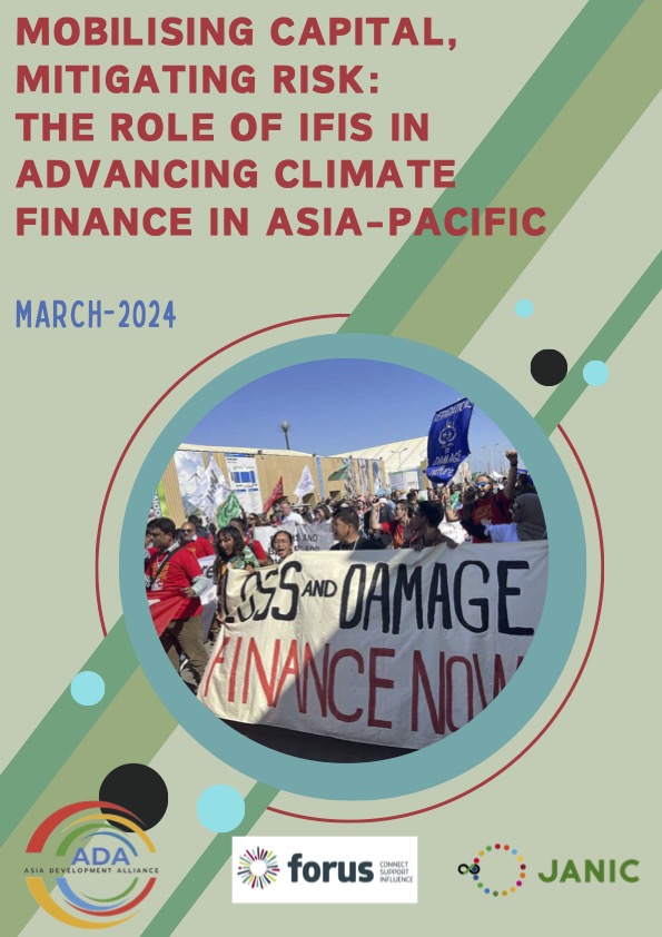 JANICも参加するアジア開発連盟(Asia Development Alliance / ADA)は、2024年3月に「資本を動員し、リスクを低減する:アジア太平洋において気候資金を推進するための国際金融機関の役割(Mobilising Capital, Mitigating Risk:TheRole of IFIs in Advancing Climate Finance in Asia Pacific」と題した英文報告書を発表しました。以下では、前文と要旨の日本語訳を紹介します。