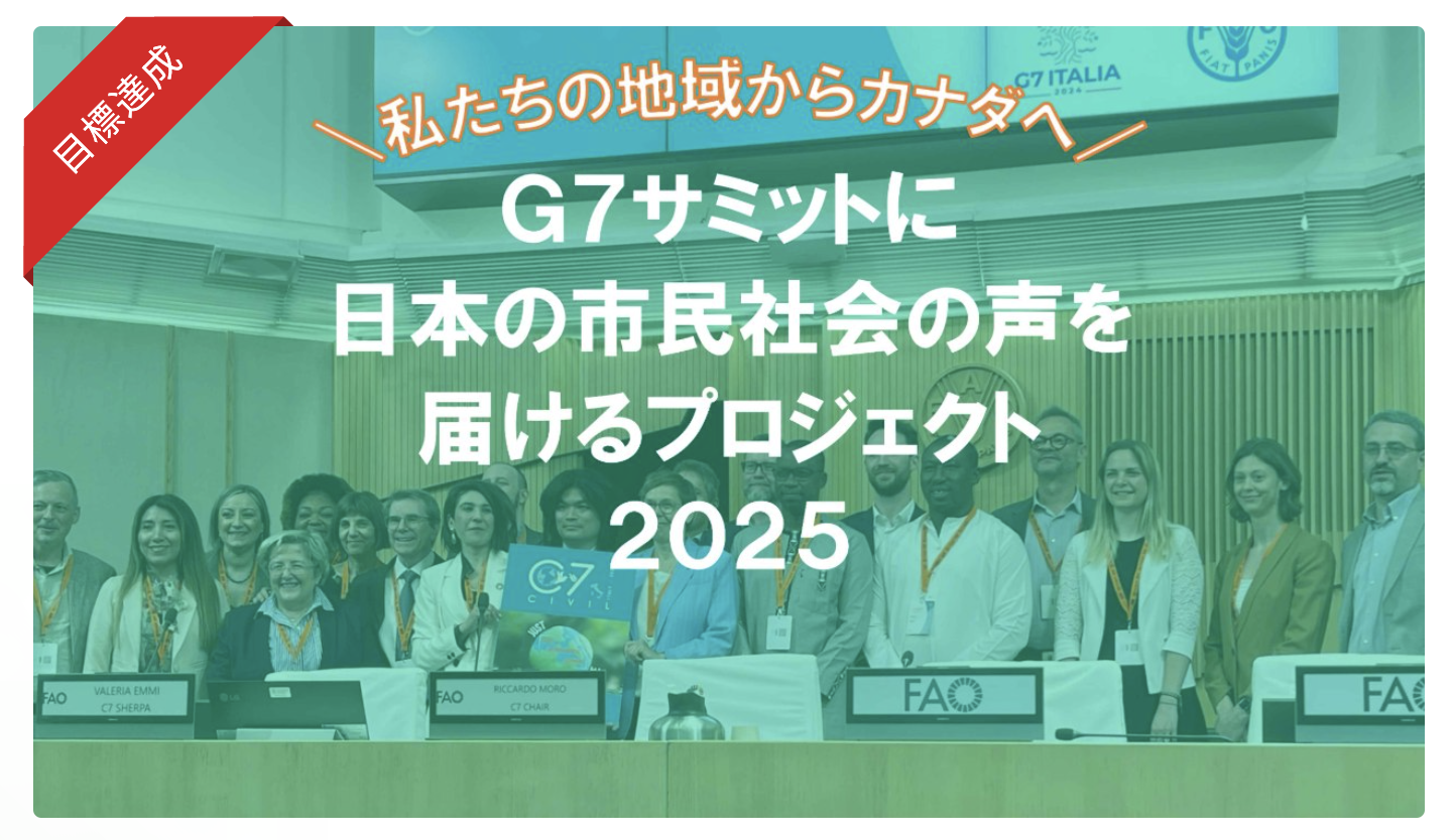 6月30日まで募集していたクラウドファンディング「\ 私たちの地域からカナダへ /G7サミットに日本の市民社会の声を届けるプロジェクト2025」に対し、104名から合計861,000円のご支援をいただき、目標を達成することができました。