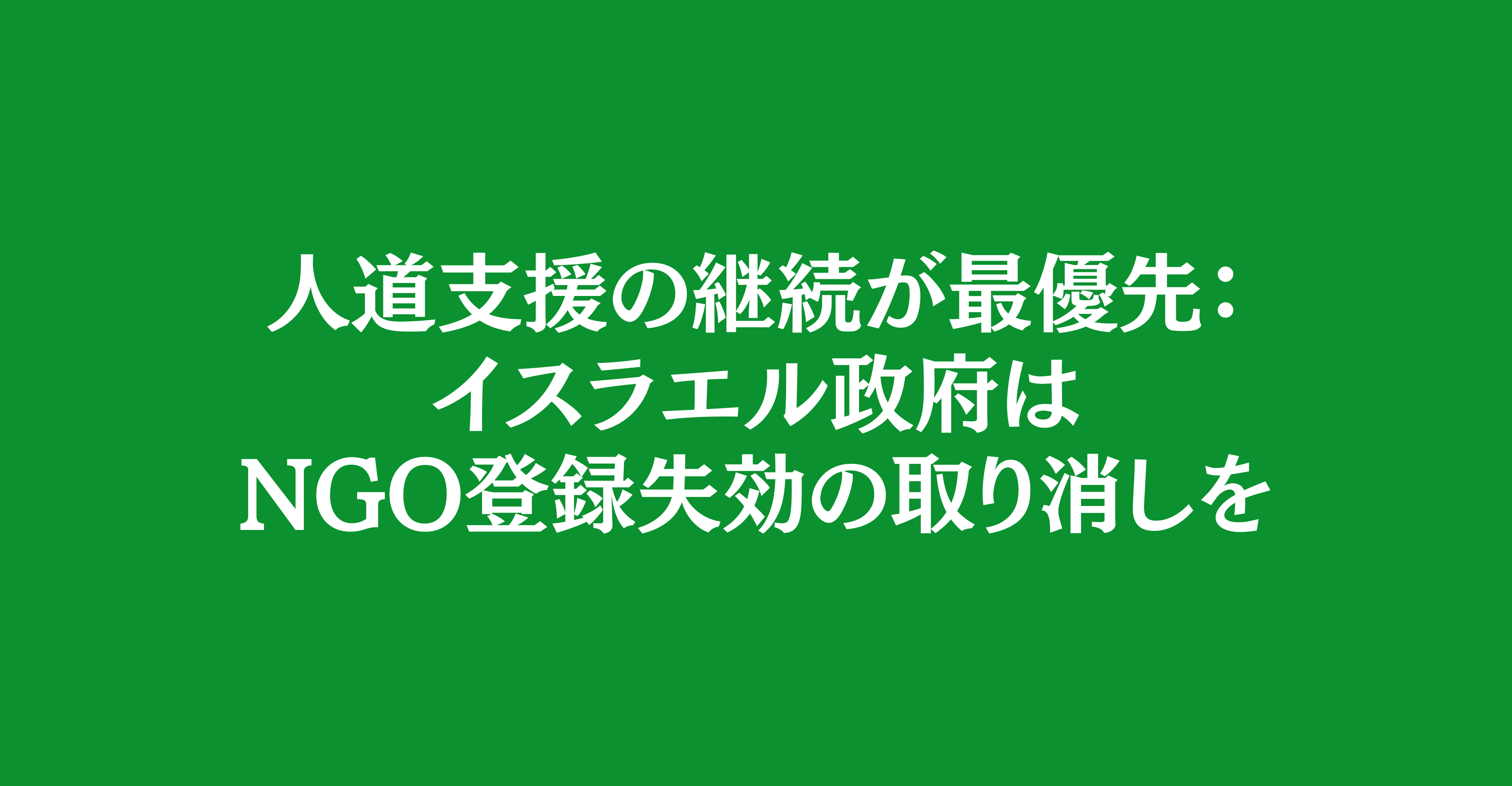 - 【声明】人道支援の継続が最優先:イスラエル政府はNGO登録失効の取り消しを