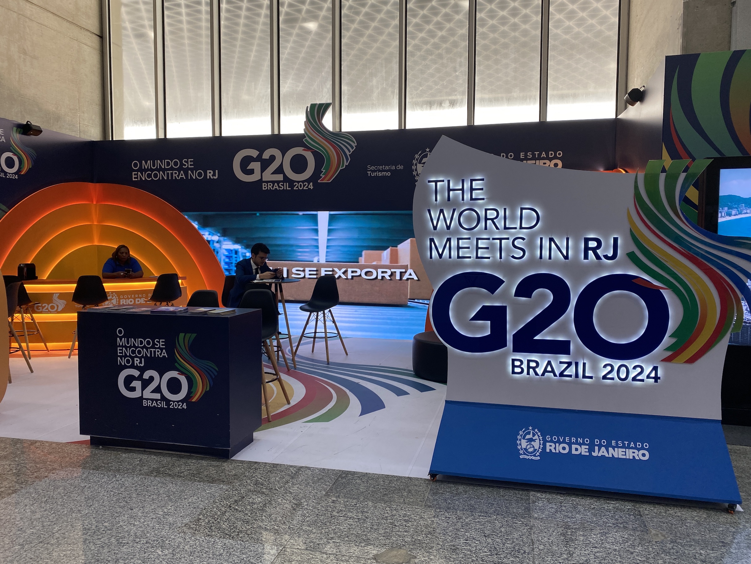 (写真:アントニオ・カルロス・ジョビン国際空港でのG20特設ブース。撮影:堀内葵)