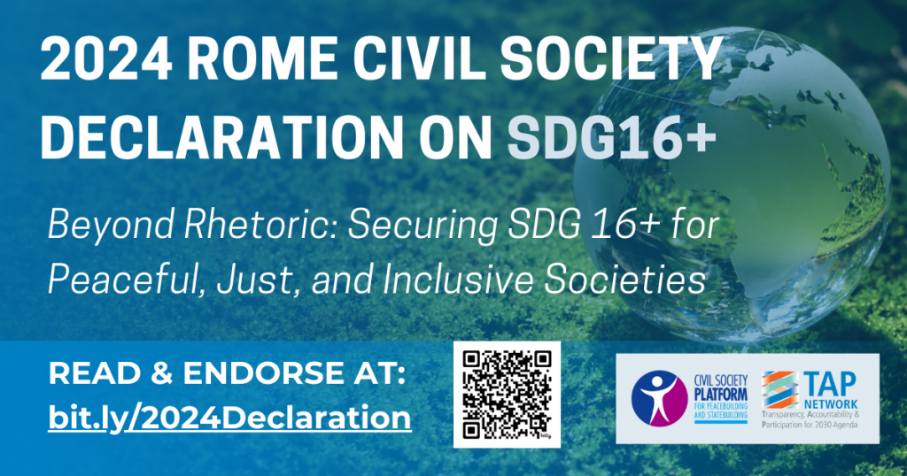 - 【賛同】SDG16+に関する2024年ローマ市民社会宣言