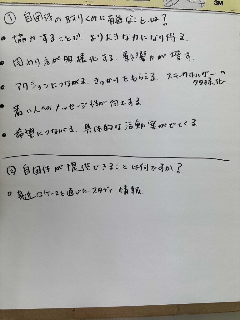 • ・若者の声を集約し、日本政府に政策提言できるとよい。