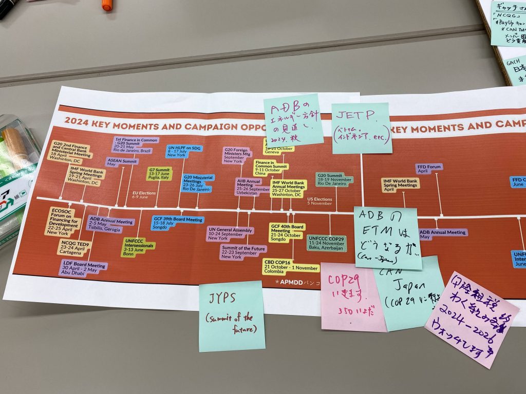 最後に、2025年までに開催される開発資金や気候資金に関する重要な国際会議をリストアップし、各団体がどの会議にどのように関わる予定なのかを確認しました。